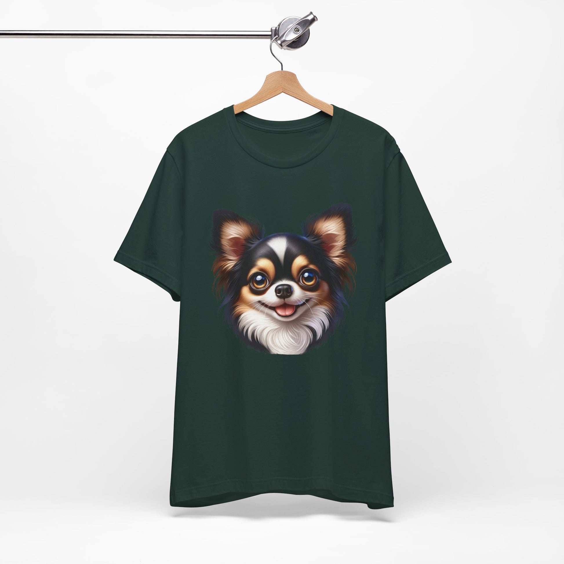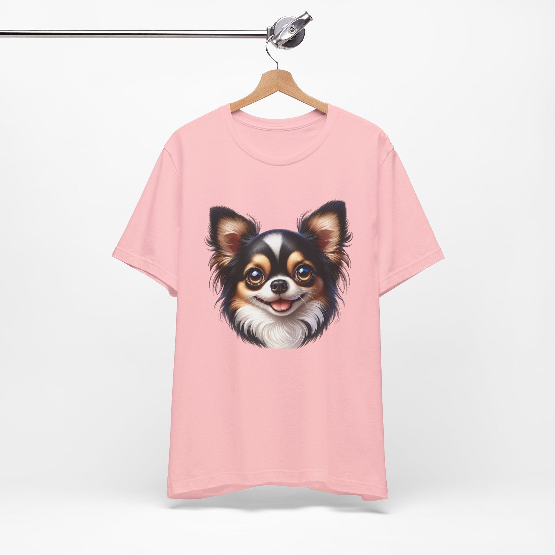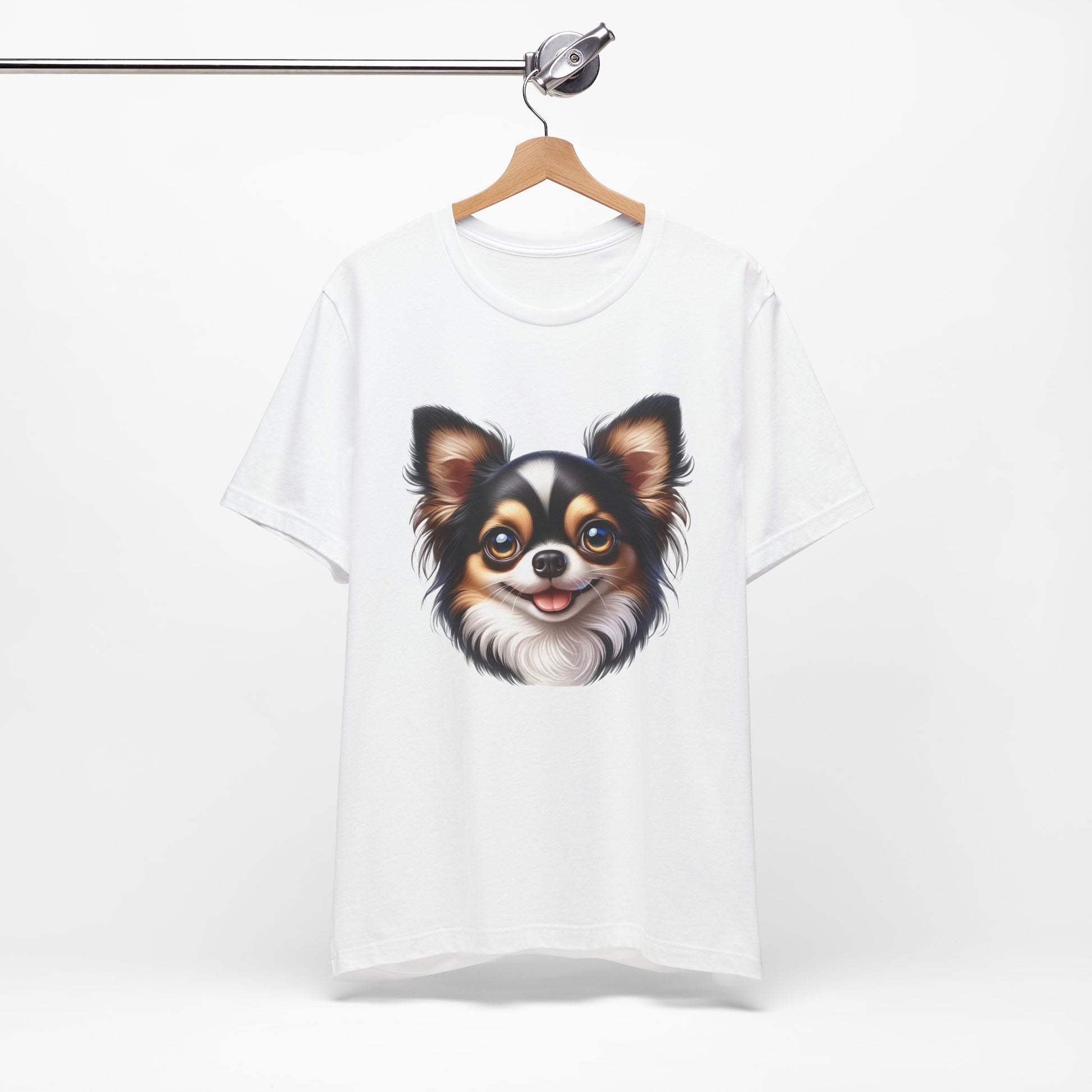 Inject a dose of joy into your wardrobe with our Chihuahua Tricolor Long Coat Cartoon Graphic Tee. This tee features a delightful cartoon representation of the tricolor long coat Chihuahua, combining playful artistry with the distinctive charm of this beloved breed. It’s the perfect way to showcase your love for the Chihuahua in a fun, vibrant manner.