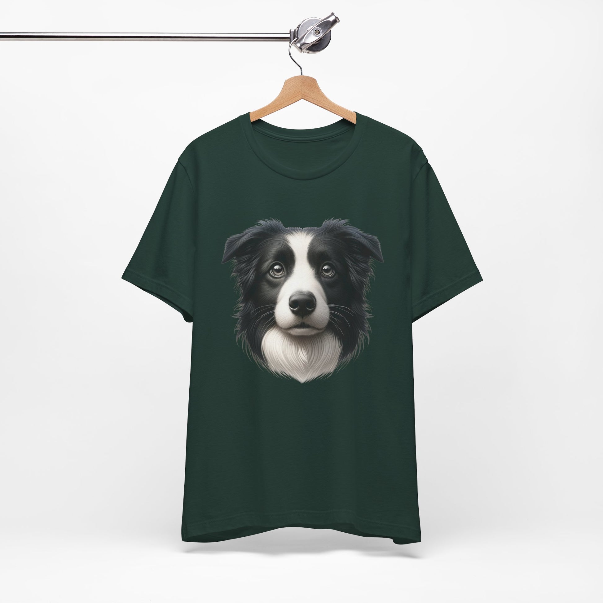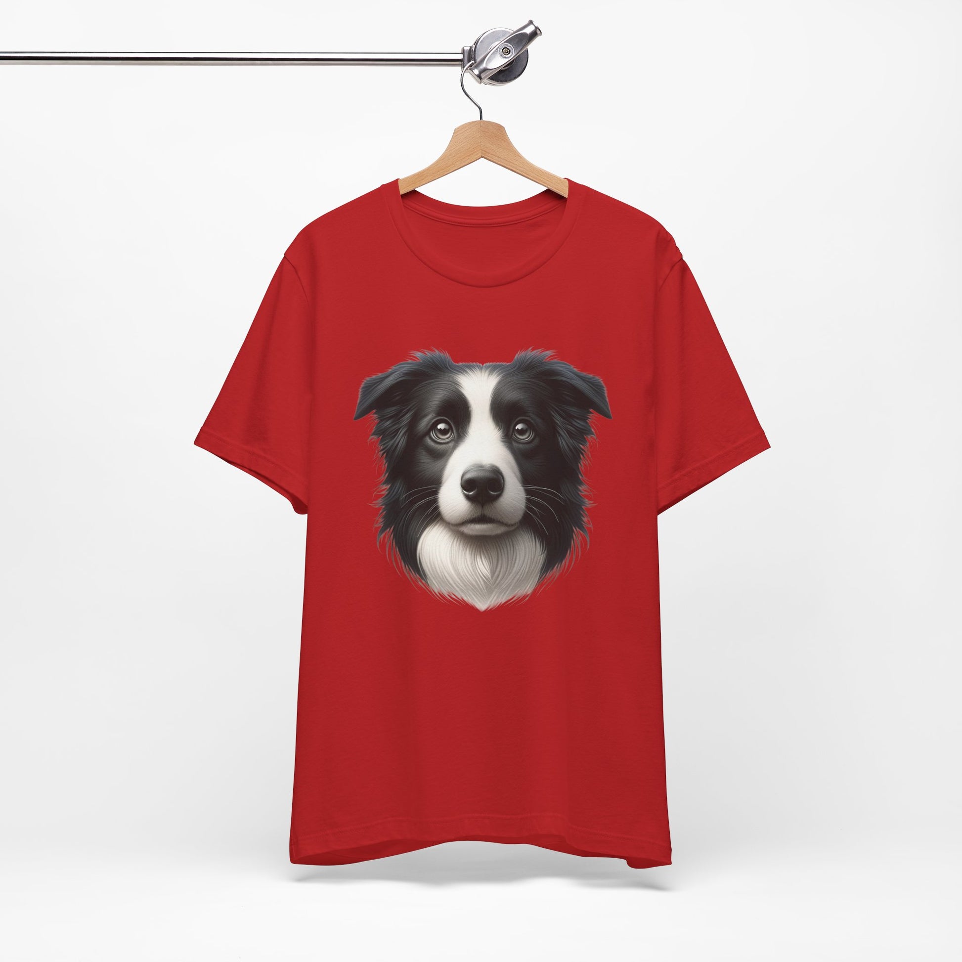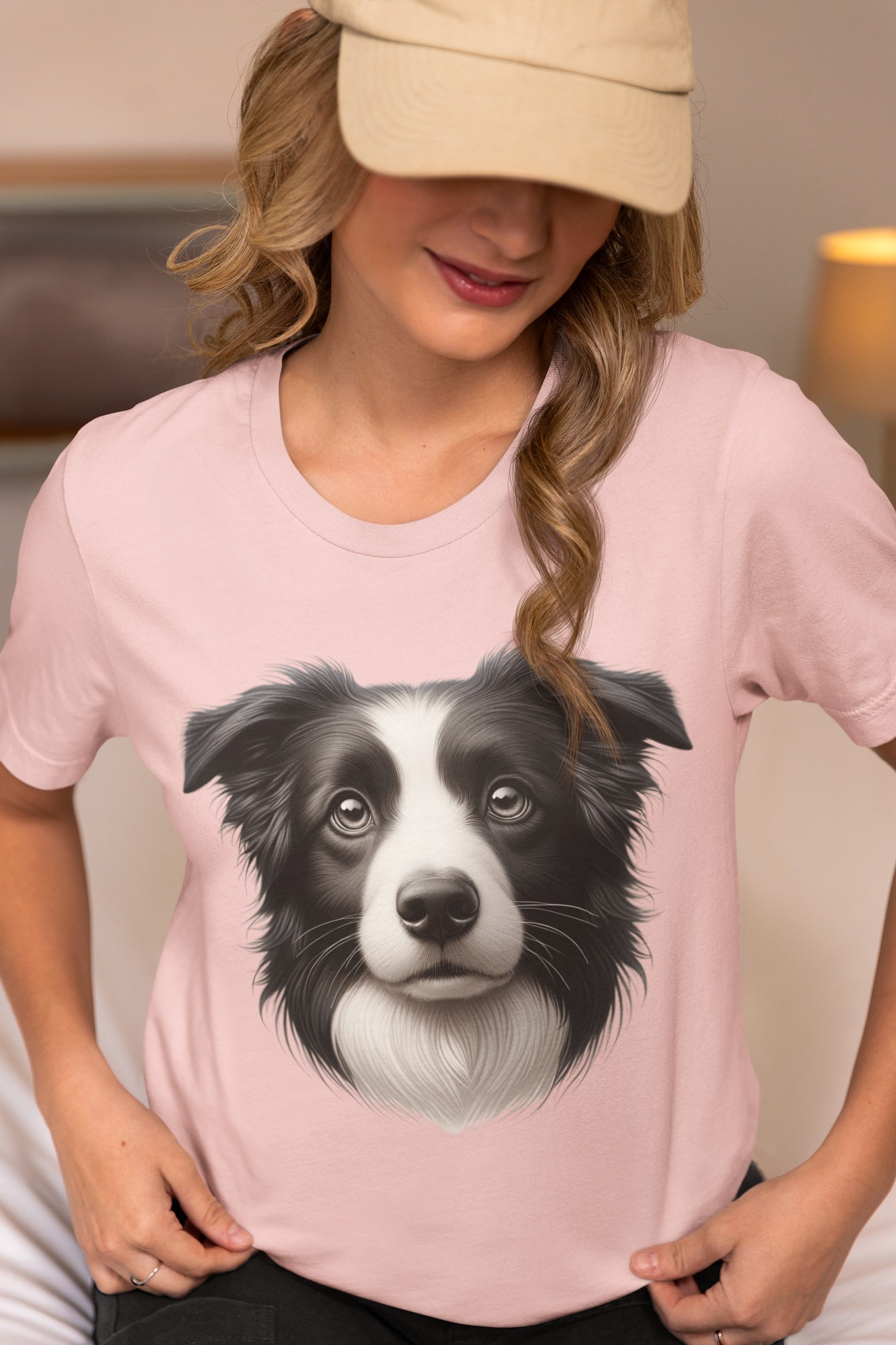 Elevate your everyday style with our Black & White Border Collie Portrait Tee. Featuring a strikingly realistic depiction of the beloved breed, this T-shirt blends art with apparel for a look that’s both eye-catching and expressive. Ideal for those who carry their pet love proudly, it’s more than a piece of clothing—it’s a statement.