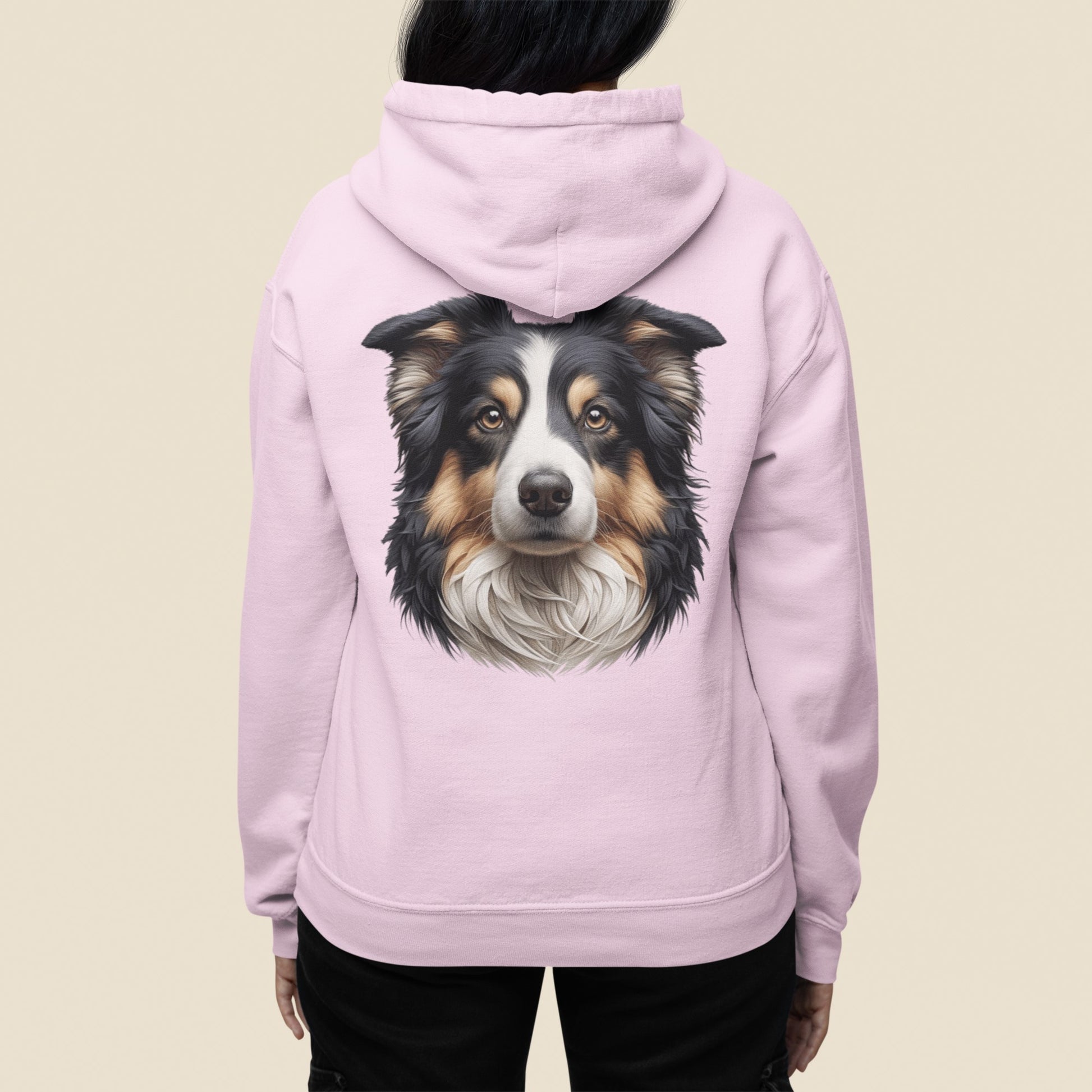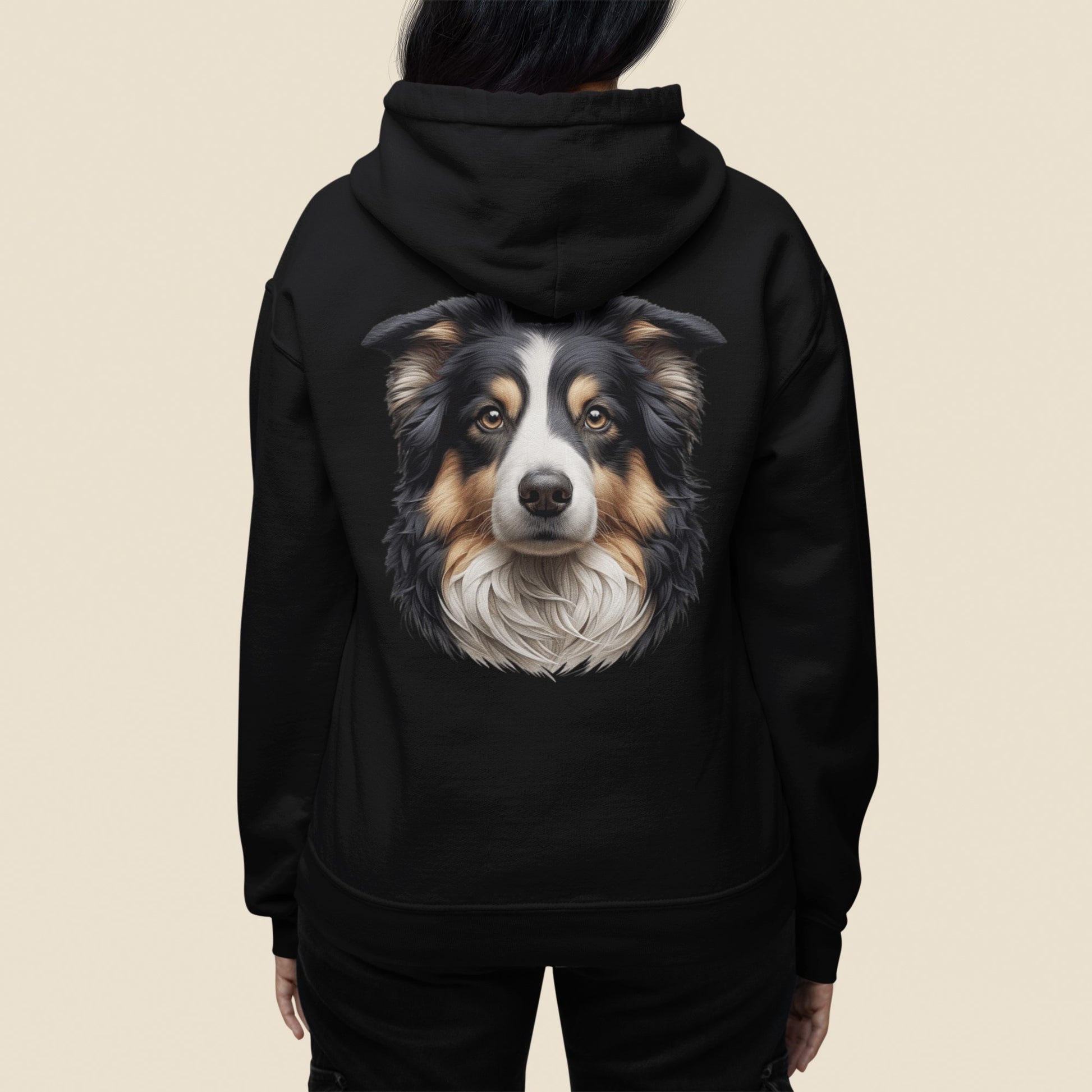 Australian Shepherd Black Tri Realistic Back Print Hoodie