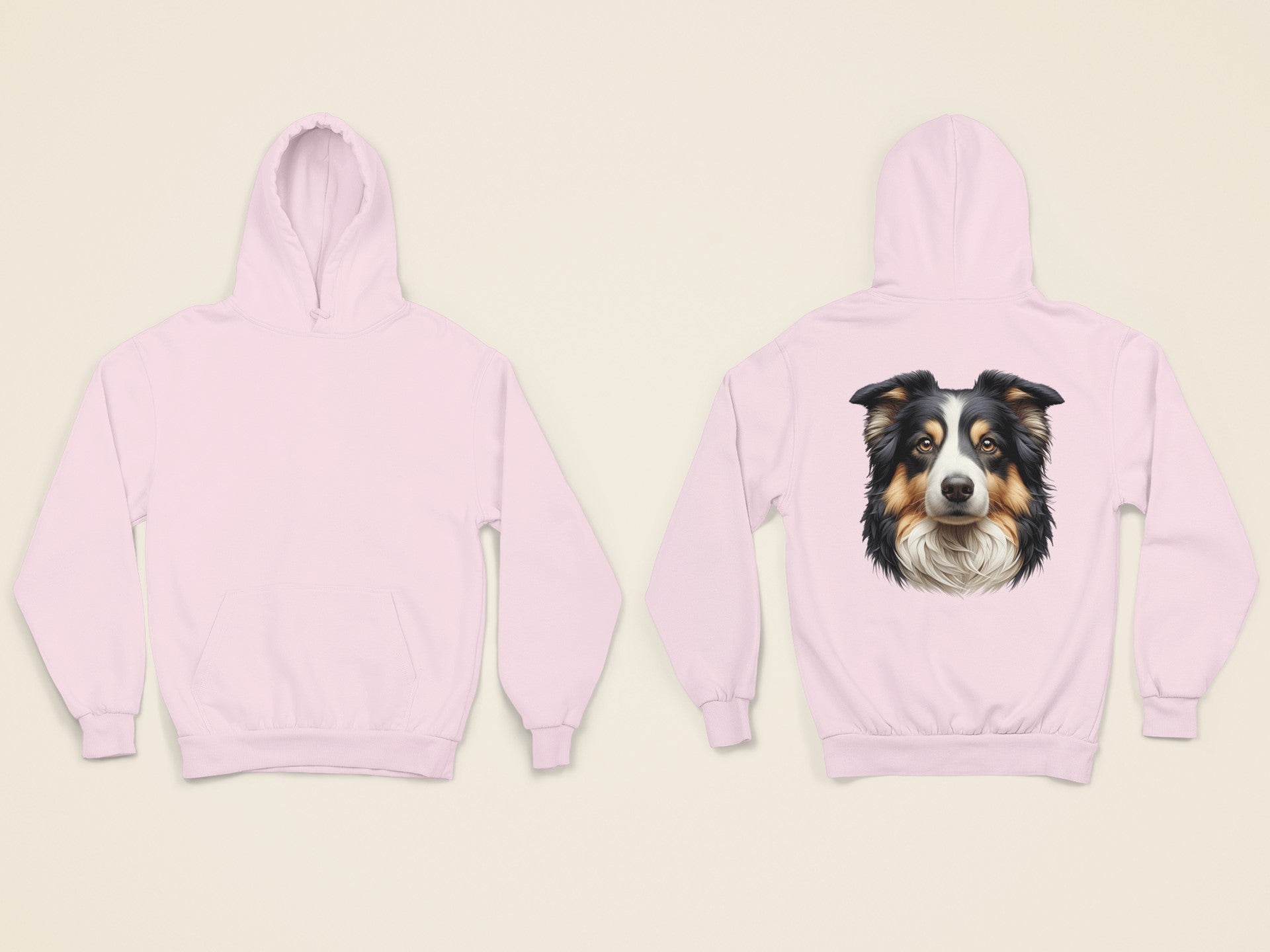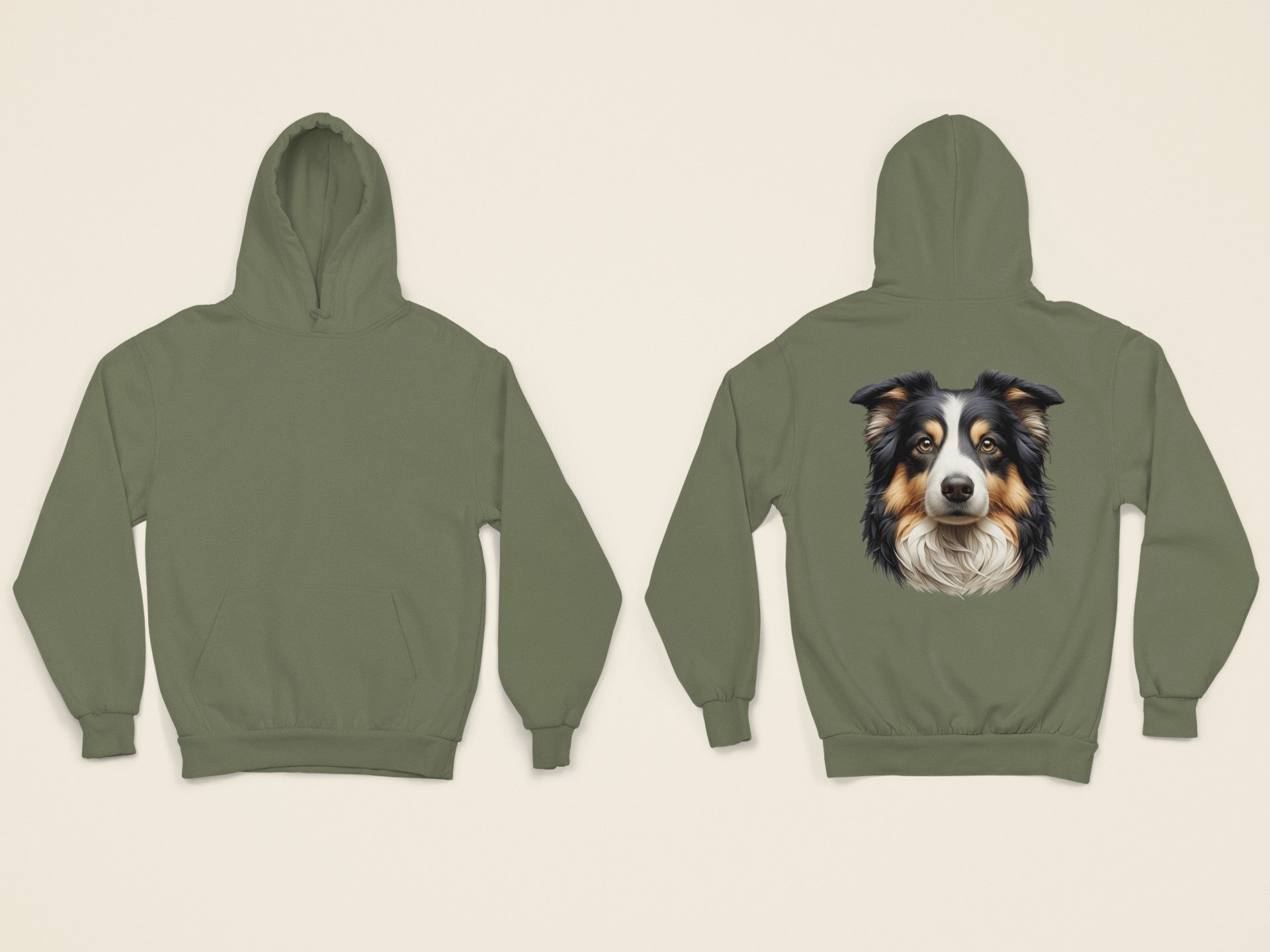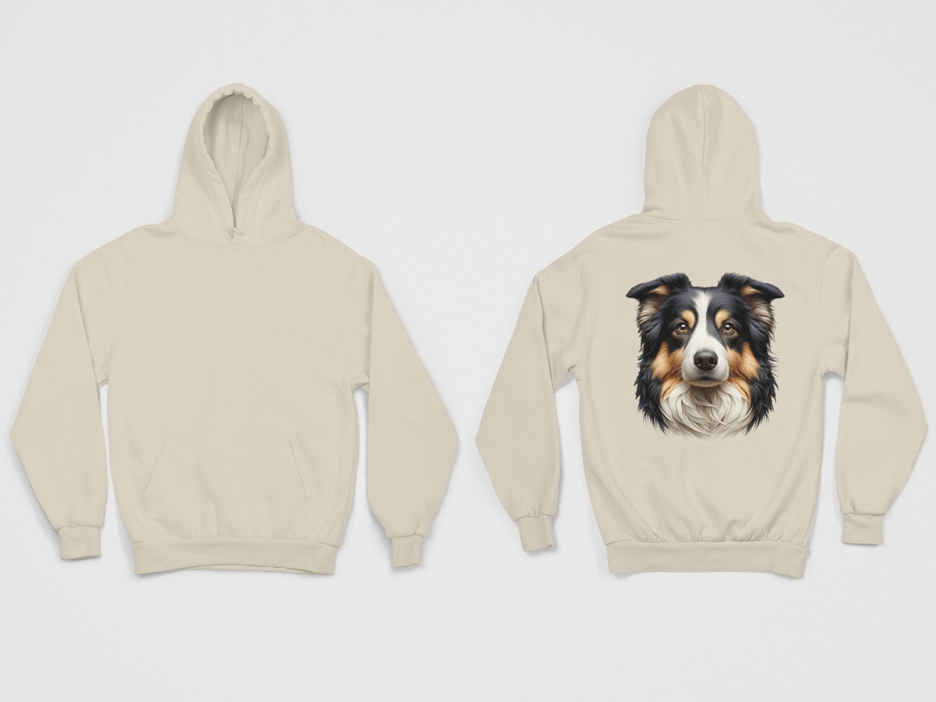Wrap up in the warmth of our Australian Shepherd Black Tri Realistic Back Print Hoodie. Featuring a lifelike depiction of the black tri Australian Shepherd on the back, this hoodie is a tribute to one of the most beloved coat patterns. It's designed for those chilly days or cozy nights in, providing both comfort and a piece of your favorite breed to carry with you.
