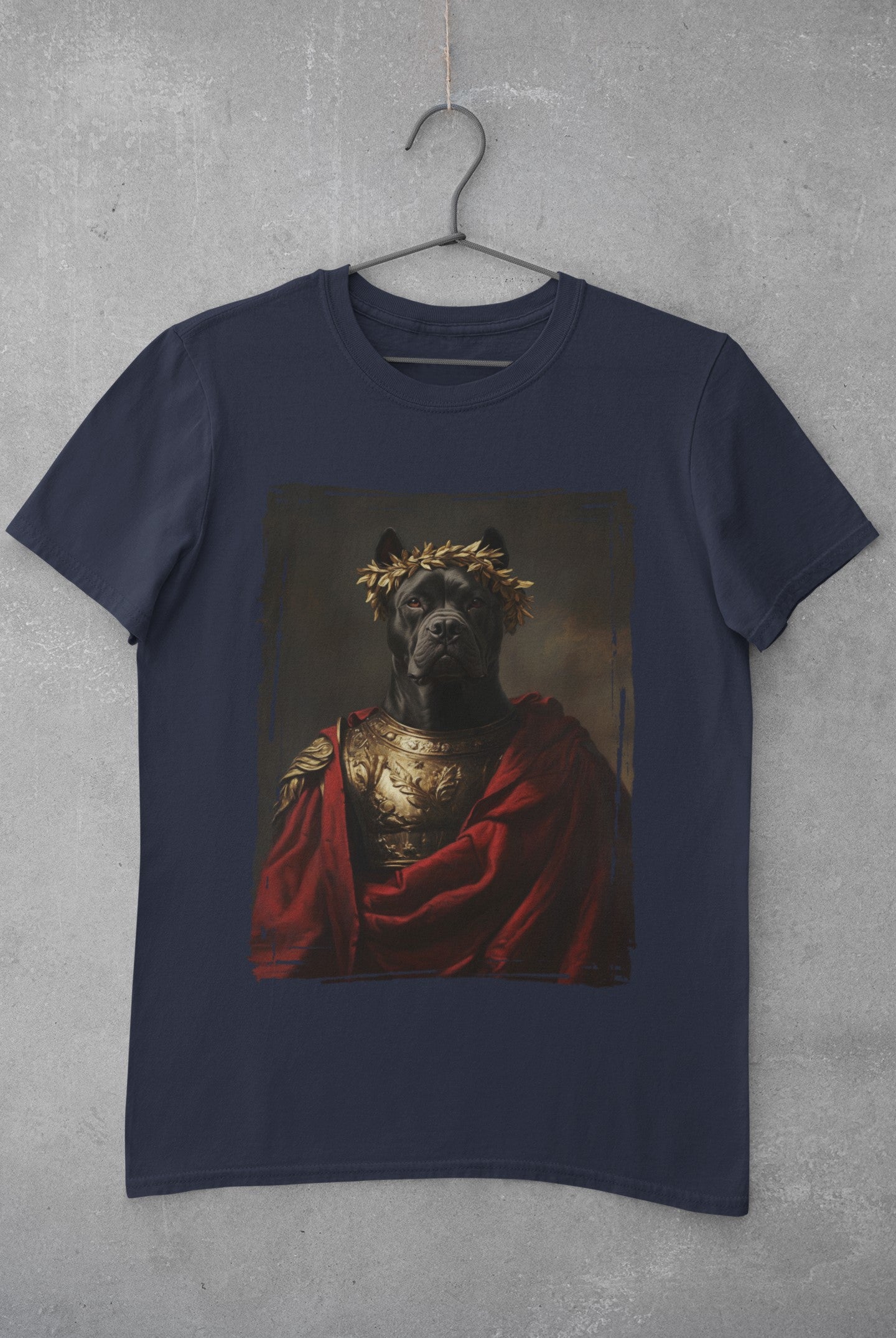 For Cane Corso lovers, this T-shirt is a proud tribute to your strong and loyal companion. Our exclusive design transforms your noble Cane Corso into a regal Roman Emperor, blending classic elegance with a modern twist.