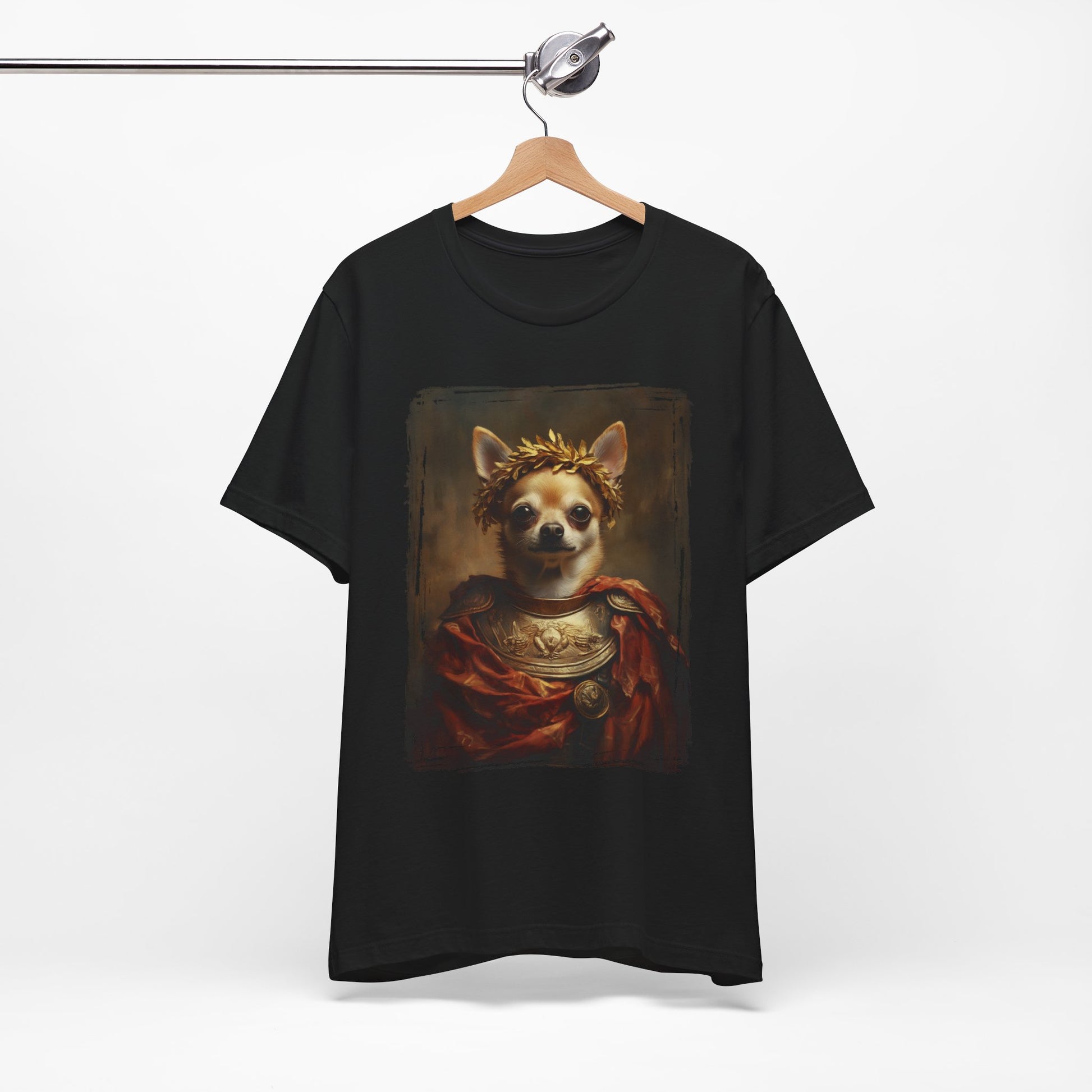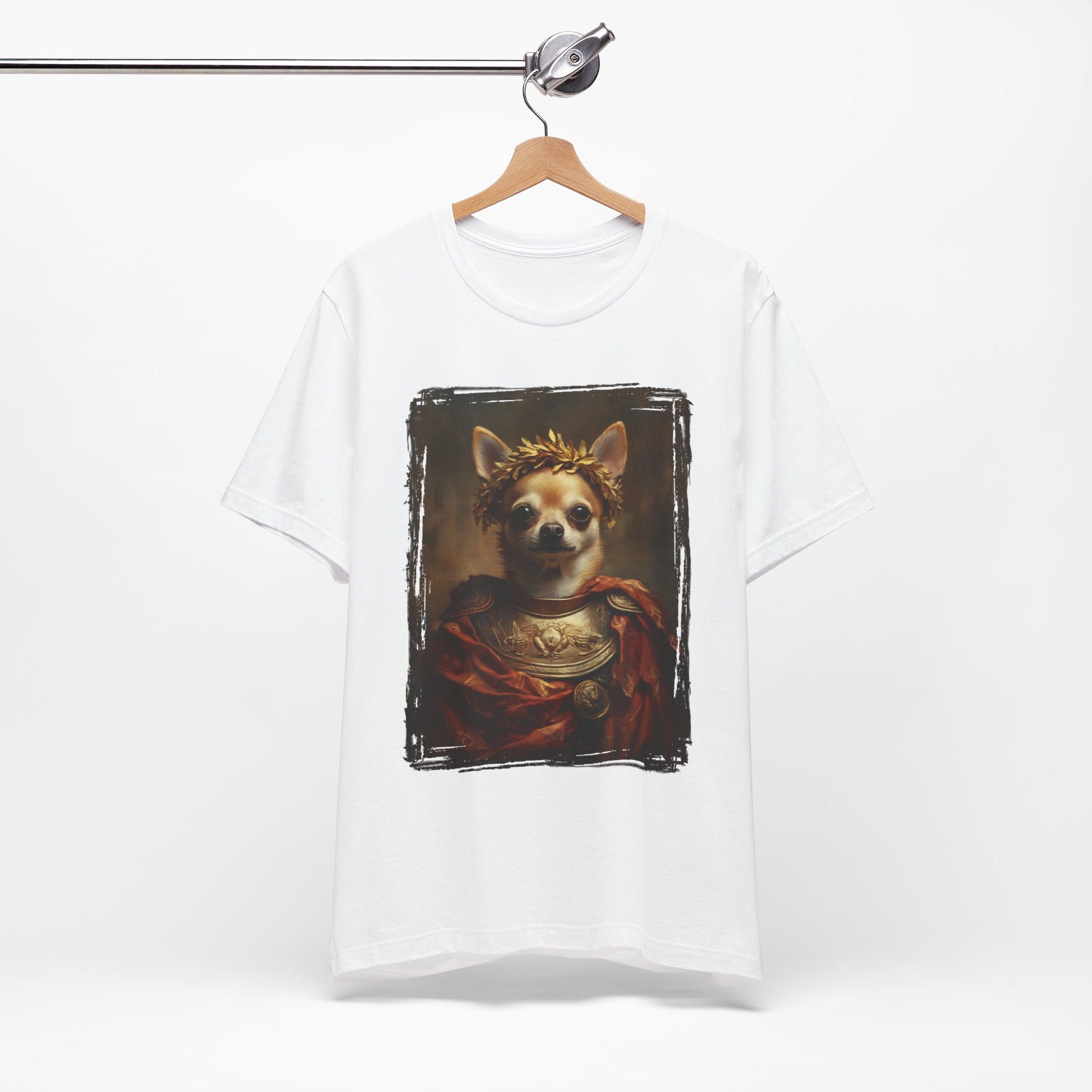 For Chihuahua lovers, this T-shirt is a warm tribute to your spirited companion. Our exclusive design transforms your delightful Chihuahua into a regal Roman Emperor, blending classic elegance with a modern twist.