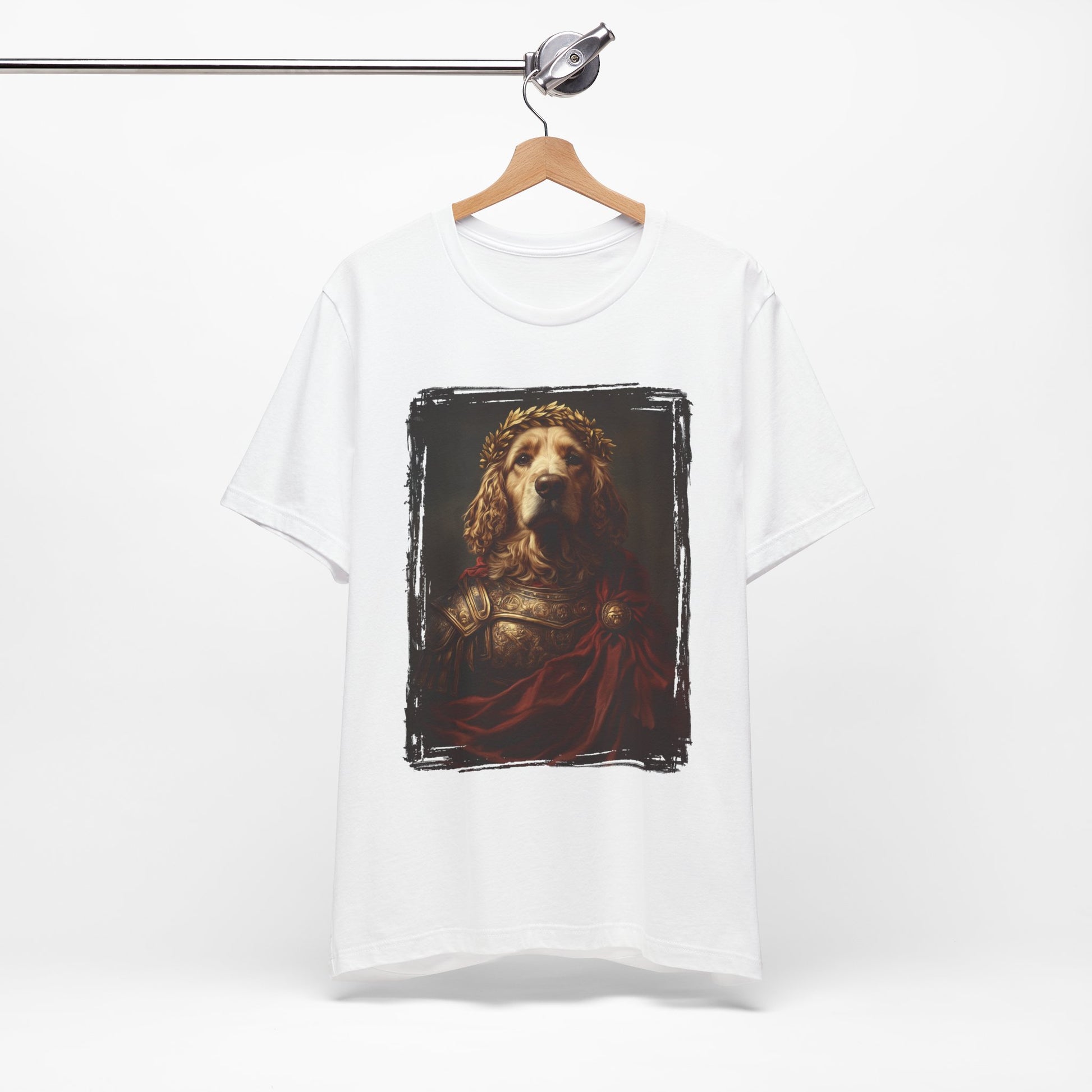 For Cocker Spaniel lovers, this T-shirt is a warm tribute to your affectionate companion. Our exclusive design transforms your beloved Cocker Spaniel into a regal Roman Emperor, blending classic elegance with a modern twist.