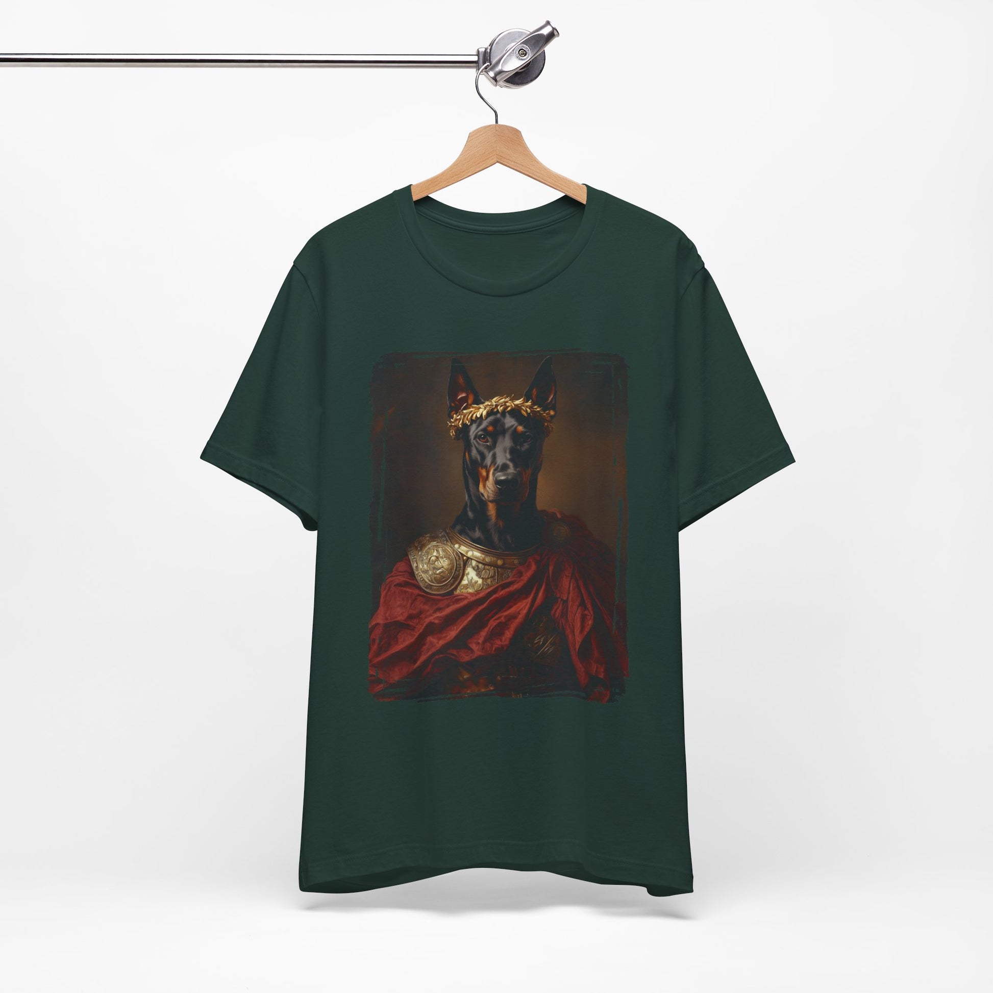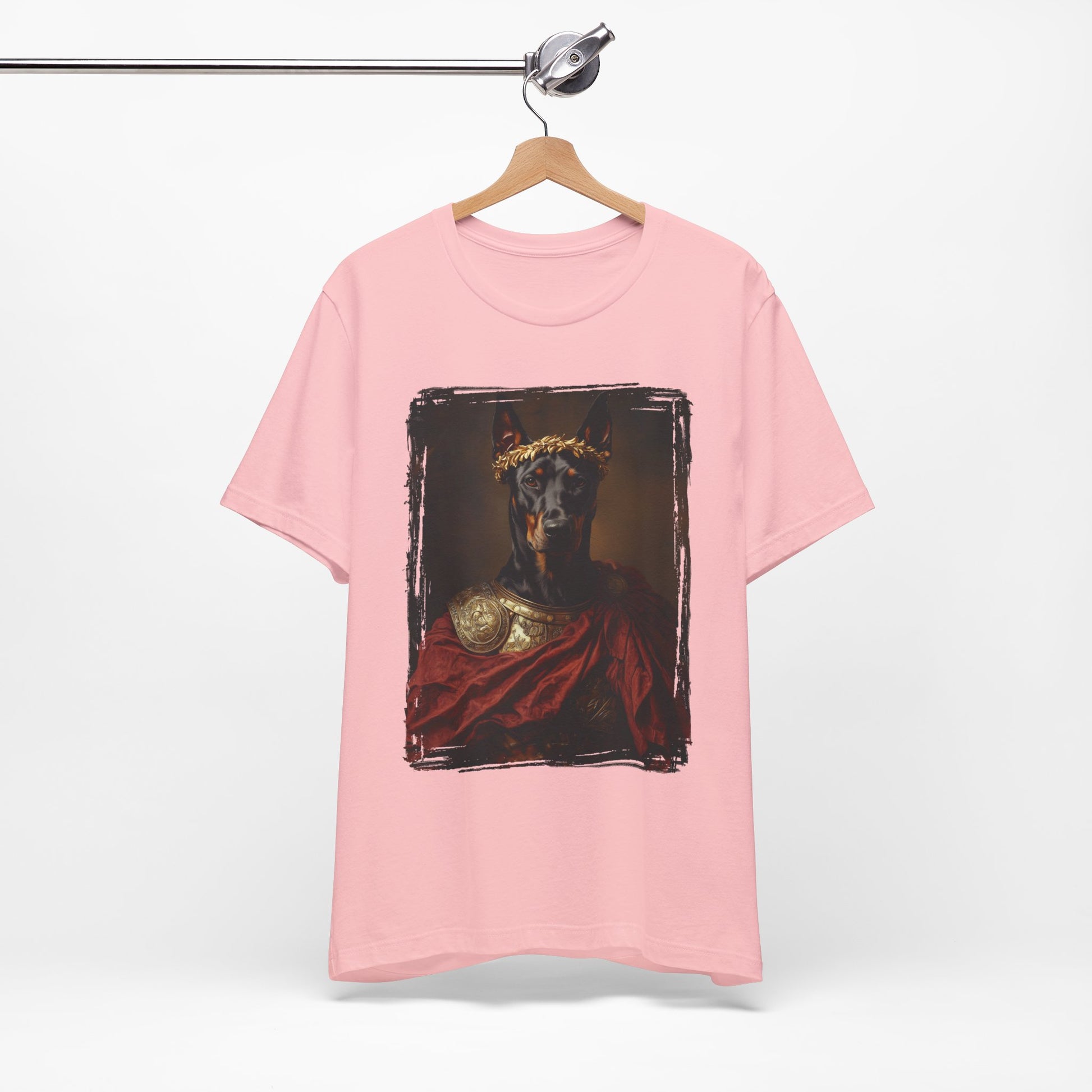 For Doberman Pinscher lovers, this T-shirt is a proud tribute to your strong and loyal companion. Our exclusive design transforms your noble Doberman Pinscher into a regal Roman Emperor, blending classic elegance with a modern twist.