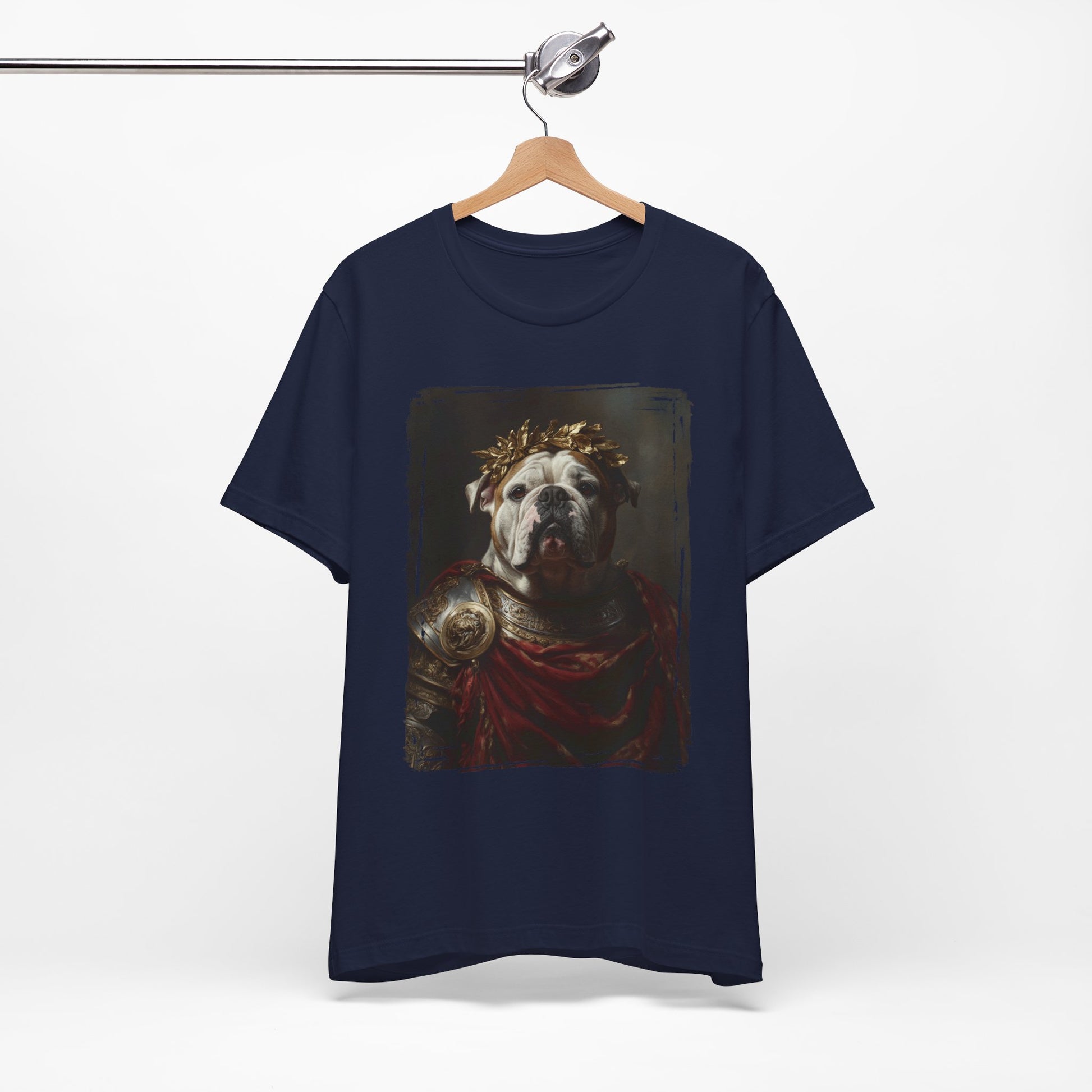 For English Bulldog lovers, this T-shirt is a warm tribute to your sturdy and affectionate companion. Our exclusive design transforms your beloved English Bulldog into a regal Roman Emperor, blending classic elegance with a modern twist.