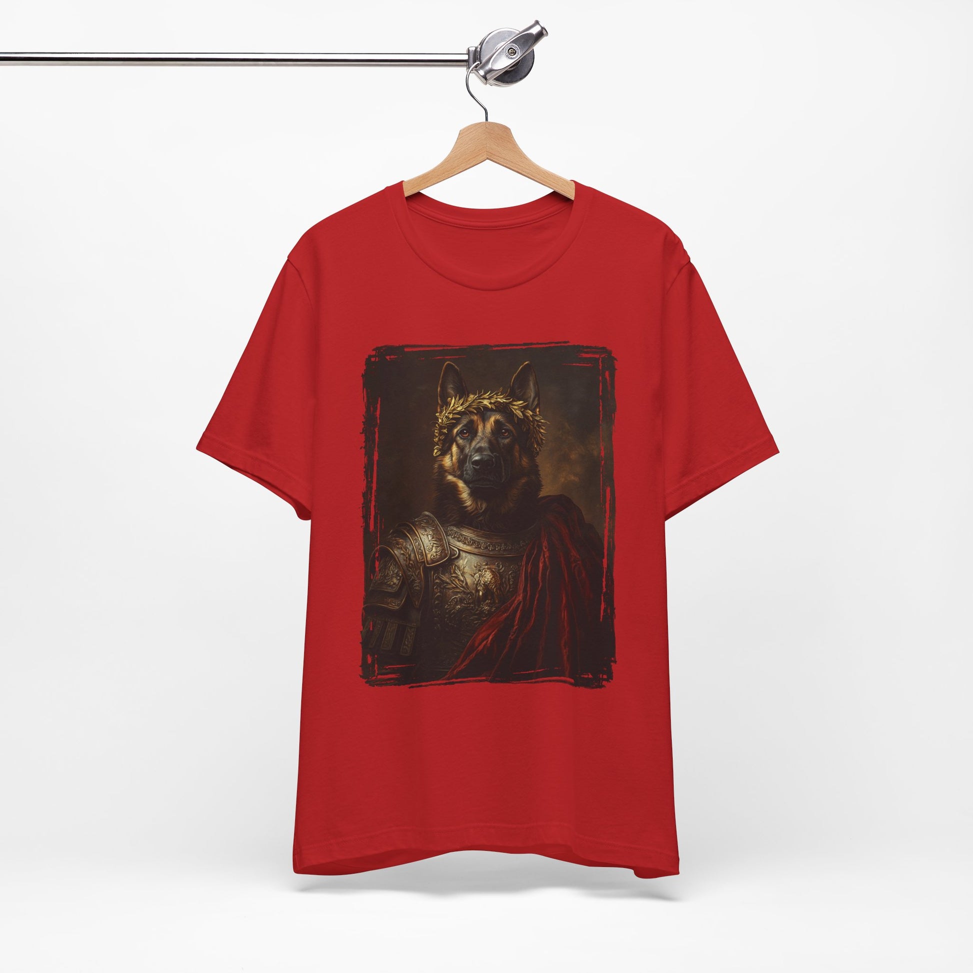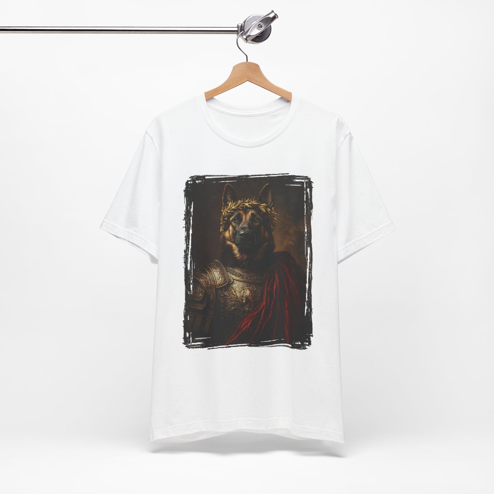 For German Shepherd lovers, this T-shirt is a proud tribute to your courageous and loyal companion. Our exclusive design transforms your trusted German Shepherd into a regal Roman Emperor, blending classic elegance with a modern twist.