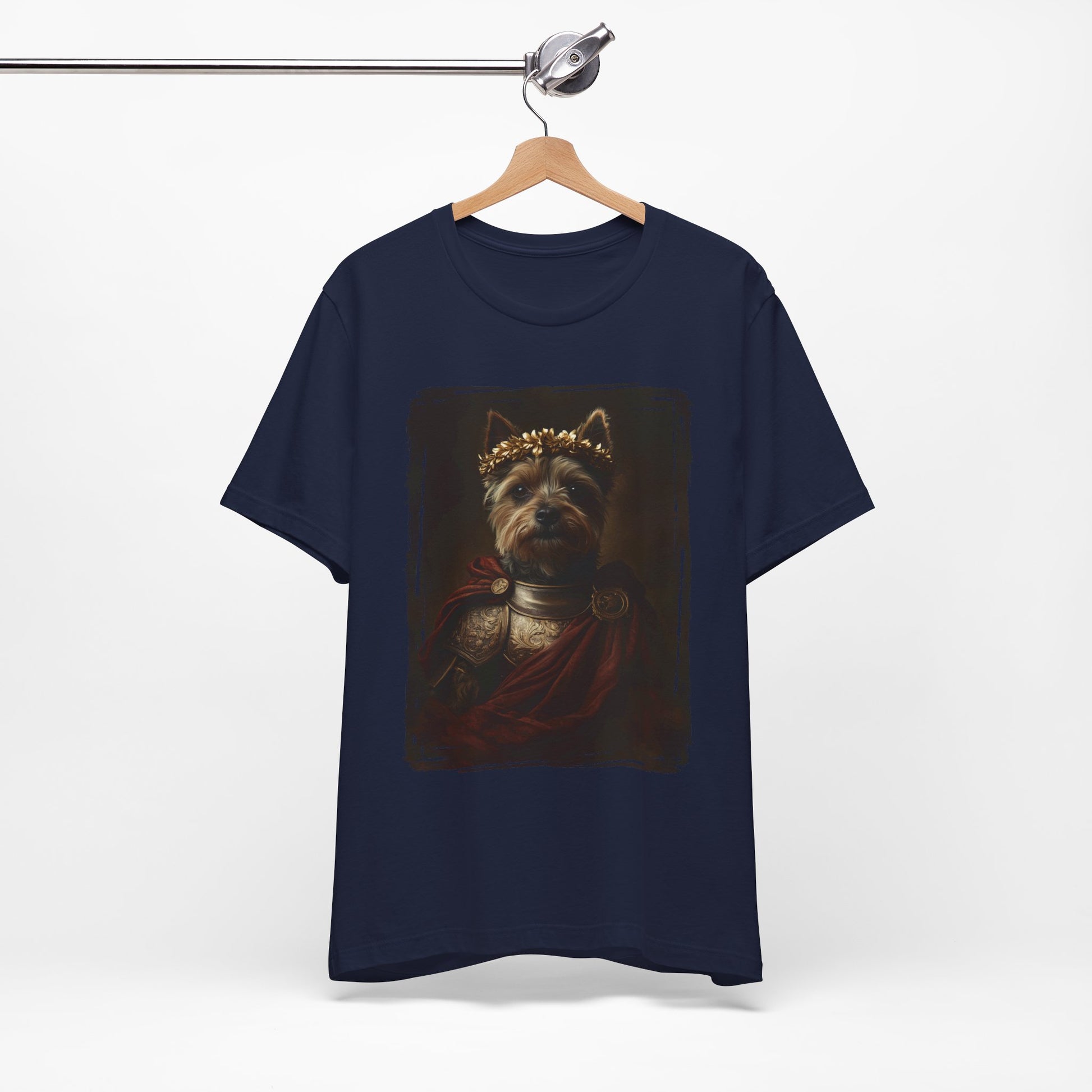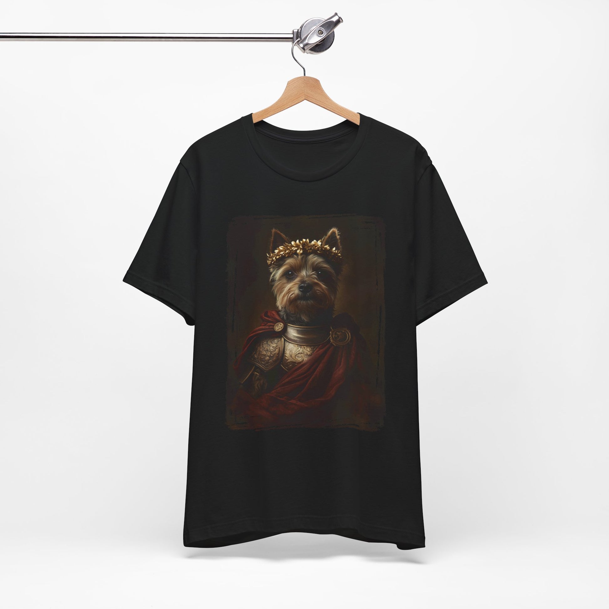 For Yorkshire Terrier lovers, this T-shirt is a warm tribute to your feisty and beloved companion. Our exclusive design transforms your charming Yorkshire Terrier into a regal Roman Emperor, blending classic elegance with a modern twist.